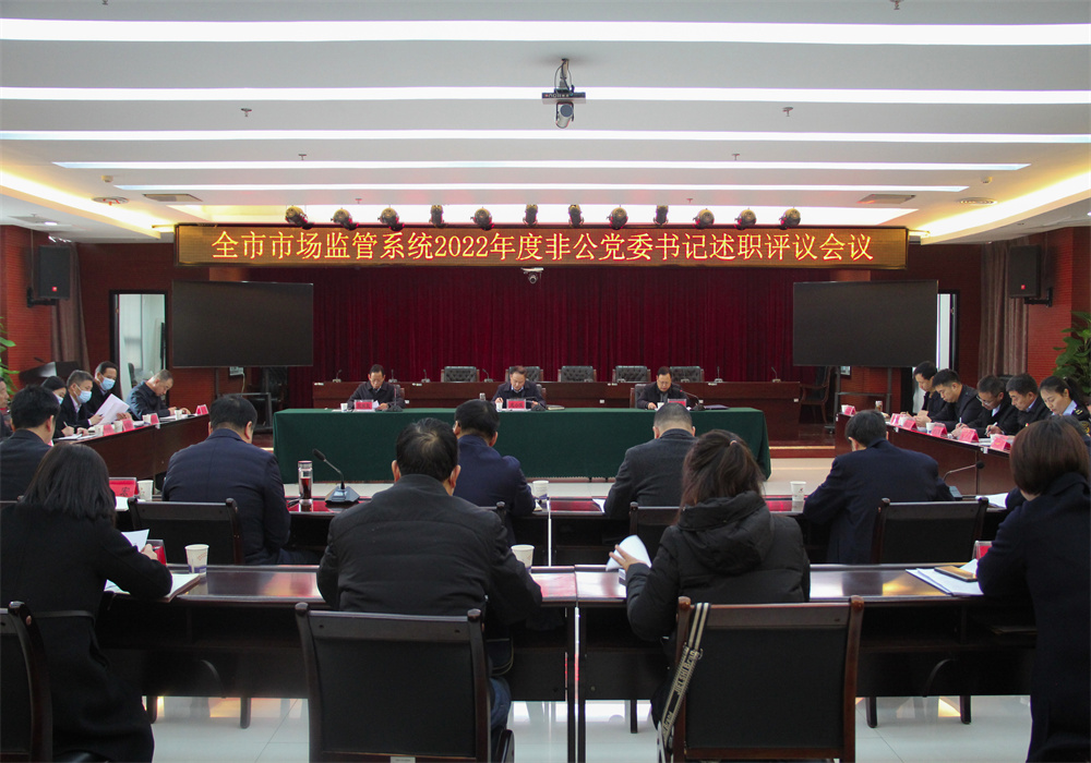 为认真贯彻落实中共365bet提款多少时间_日博官网365bet_365买球平台下载委组织部《关于开展2022年度党委(党组)书记抓基层党建工作述职评议考核工作的通知》精神,2023年2月27日,365bet提款多少时间_日博官网365bet_365买球平台下载市场监督管理局召开了全市市场监督管理系统2022年度非公党委书记述职评议会议。市市场监管局非公党委书记、副书记、党委委员及各直属单位党支部书记,各县区市场监管局非公党委书记、非公党建工作的分管领导及1名业务骨干共计30余人参加了会议。